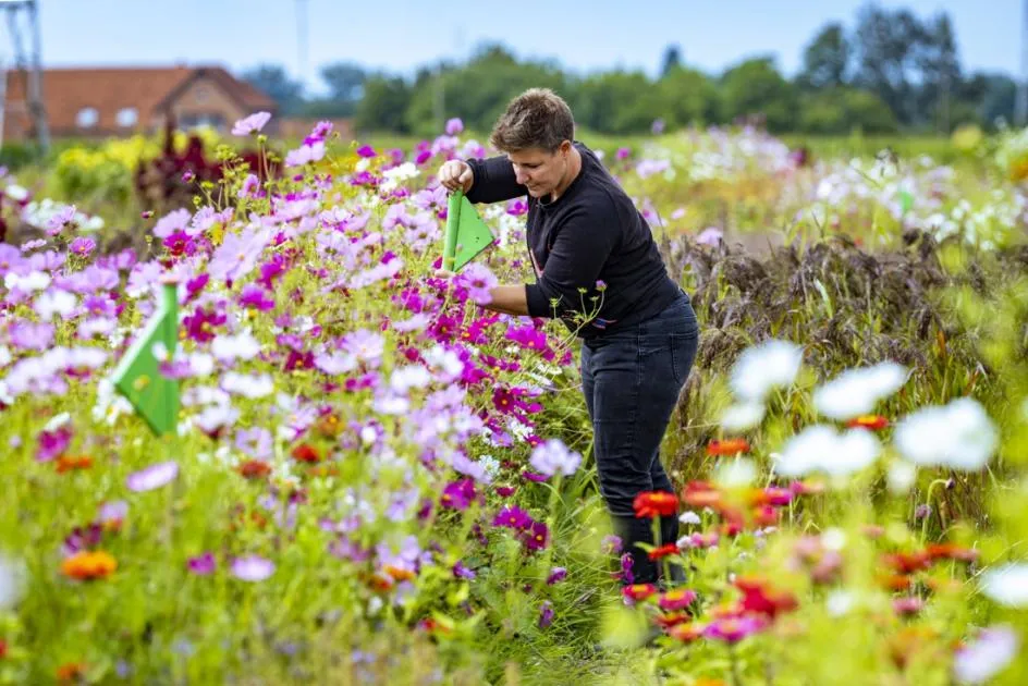 Wat verderop komen we Anne-Marie Rubens tegen. “Ik heb van mijn man een abonnement gekregen voor Moederdag. Zelf bloemen plukken en er een mooi boeket van maken, het was voor mij een heel leuke ontdekking”, lacht ze.