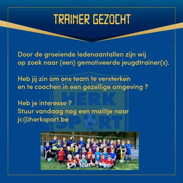 We want you ! We zijn op zoek naar gemotiveerde jeugdtrainers. Stuur vandaag nog een mailtje naar jc@herksport.be