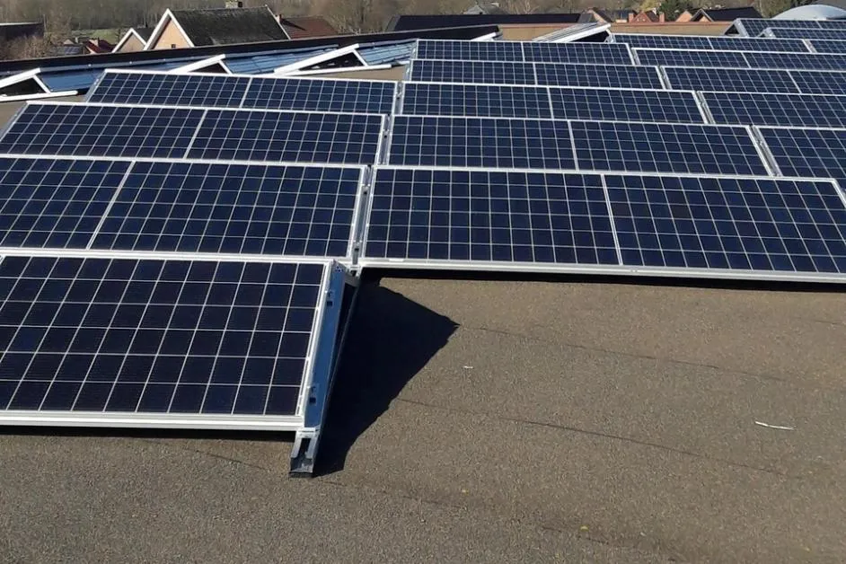 Zopas werden er 107 zonnepanelen (in totaal 227 m²) geplaatst op het dak van de sporthal Elckerlyc in Sint-Lambrechts-Herk.