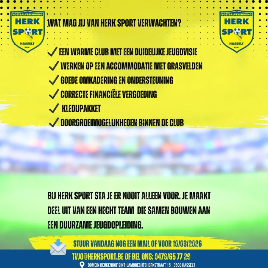 Stuur ons gerust een bericht via jc@herksport.be voor meer info of om vragen te stellen.