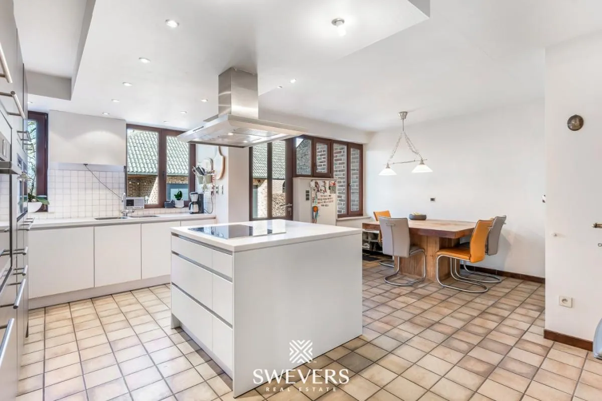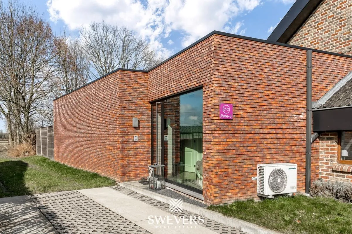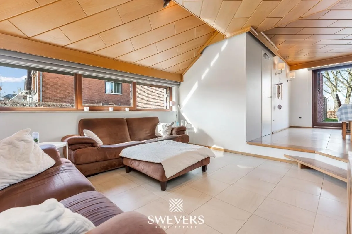 De woning werd gebouwd in 1985 en doorheen de jaren zorgvuldig gerenoveerd. In 2012 werd de gasketel vernieuwd en in 2018 kwam de praktijkruimte van 55 m² erbij. De leefruimte met een verzonken zitgedeelte straalt gezelligheid uit en grenst aan een keuken van 23,25 m². De keuken werd stijlvol afgewerkt met een epoxy werkblad en hoogwaardige inbouwtoestellen zoals een microgolf, oven, vaatwas, steamer en koelkast. Dankzij de grote ramen baadt de woning in natuurlijk licht.