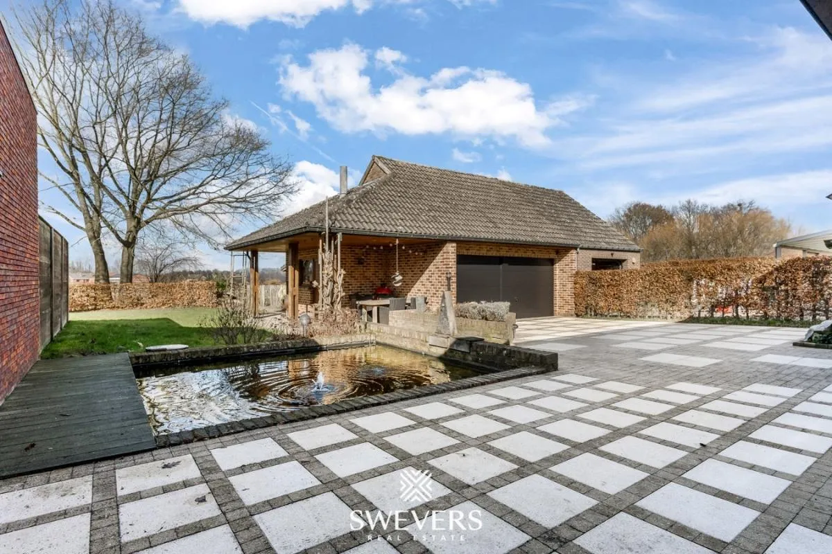 Het perceel van 1306 m² biedt een prachtige, westelijk georiënteerde tuin. Hier geniet je in de namiddag en avond van de zon. De waterpartij en het achterliggende agrarische groen zorgen voor een rustgevende sfeer. Regenwater wordt optimaal benut met twee regenwaterputten (10 kuub en 8 kuub), die aangesloten zijn op de toiletten, wasmachine en een kraan in de garage.