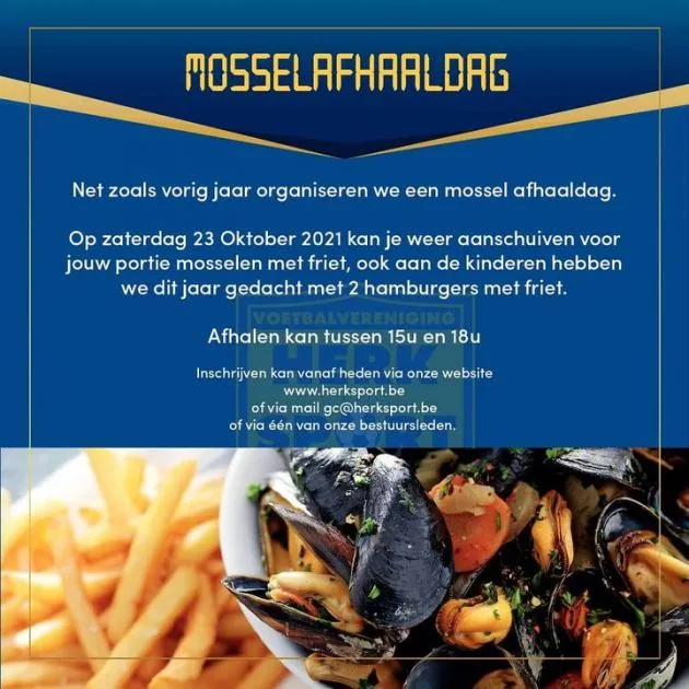 Op zaterdag 23 oktober kan je weer aanschuiven voor de mossel afhaaldag van Herk Sport.