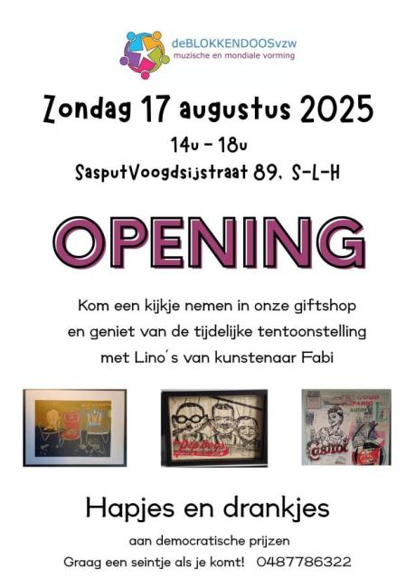Ontdek onze nieuwe giftshop en bewonder de tijdelijke tentoonstelling met lino's van kunstenaar Fabi