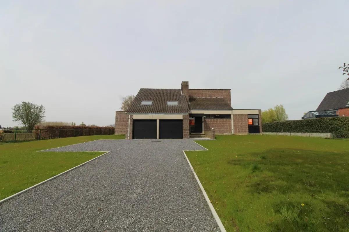 INDELING: GELIJKVLOERS: Ruime inkomhal met gastentoilet; Lichtrijke eet- en leefruimte voorzien van houtkachel en openhaard, met toegang tot de tuin; Keuken voorzien van elektrisch vuur, ingebouwde friteuse en gril, dampkap en frigo met diepvriesvak; Slaapkamer; Badkamer voorzien van douche, toilet en enkele lavabo; Inpandige garage met dubbele automatische poort; Berging met uitgietbak en aansluiting voor wasmachine. De keuken, eet- en woonkamer genieten van een prachtig zicht over de tuin, uitgestrekte velden en stallingen.