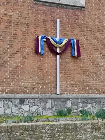 Tijdens de vastentijd wordt er een kruis geplaatst aan de kerk.