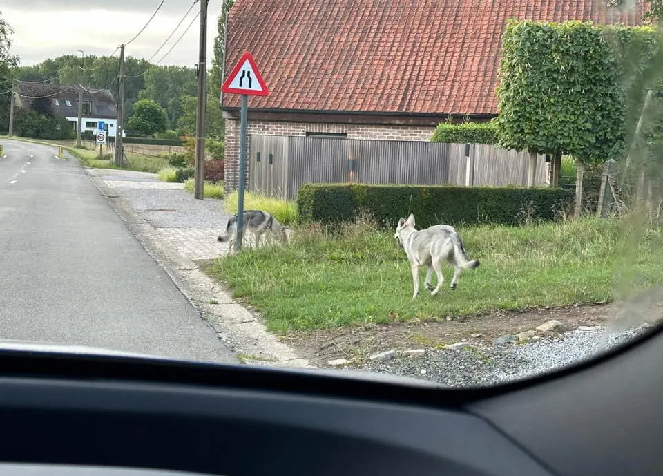 Vanochtend even opschudding in de Muntelbeekstraat. Waren er wolven gespot?  Het bleken saarloos wolfhonden te zijn en geen wolven. Ze liggen onertussen weer thuis op hun deken.