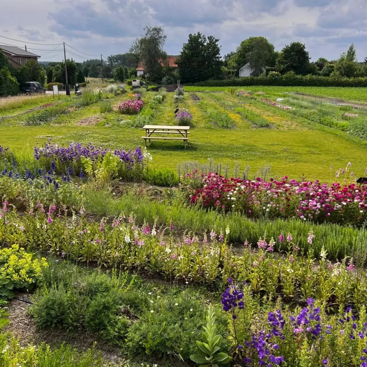 Doorlopend kan je zelf je boeketje plukken, vergeet je emmer en snoeischaar niet. Er is water op het veld.