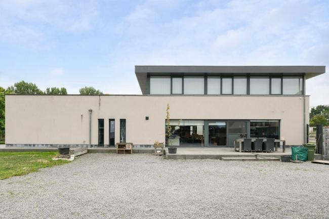De leefruimte is bijzonder aangenaam en lichtrijk, met grote raampartijen en een sfeervolle gashaard als blikvanger. De open keuken is volledig uitgerust en sluit mooi aan op de eet- en zithoek. Aansluitend bevindt zich een gastentoilet en een praktische bureauruimte, ideaal voor thuiswerk of als hobbykamer/5e slaapkamer.