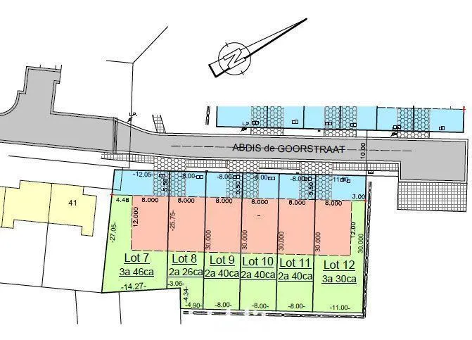 Een perceel bouwgrond voor halfopen bebouwing in de Abdis de Goorstraat. Zoals dit goed afgebeeld staat onder LOT 7 op het verkavelingsplan dat gehecht is gebleven aan de verkavelingsakte, wordt vanaf 16 november per opbod verkocht. Bieden kan tot 24 november 15u00.