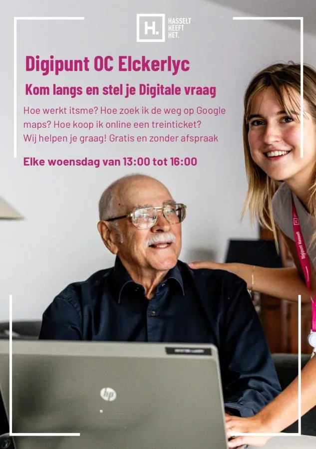 De stad Hasselt telt tien Digipunten. Dat zijn locaties waar alle Hasselaren gratis welkom zijn met hun digitale vragen. De Digipunten worden bemand door vrijwilligers. Samen met jou gaan ze aan de slag om een oplossing te vinden voor jouw digitale probleem. Zit je met een vraag over je smartphone, tablet of laptop? Kom dan zeker langs. Je mag zo vaak binnenspringen als nodig!