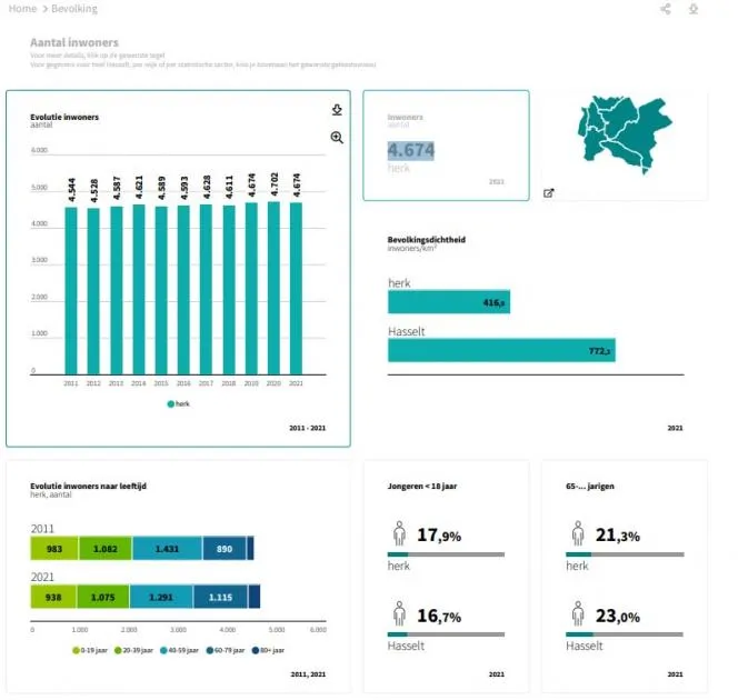 Op hasselt.incijfers.be vind je cijfers over de stad Hasselt en de verschillende Hasseltse wijken.