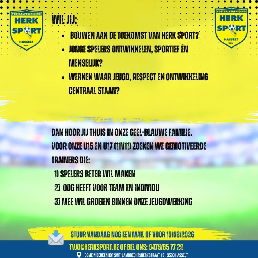 Stuur ons gerust een bericht via jc@herksport.be voor meer info of om vragen te stellen.