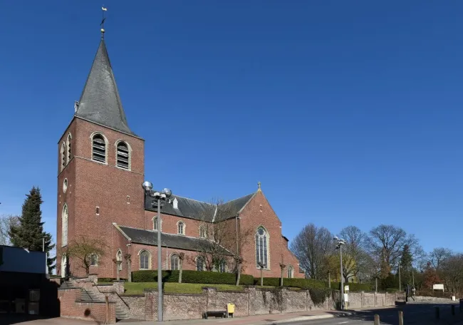 De kerk, zoals we die vandaag kennen, is een statige neogotische kruisbasiliek die tussen 1892 en 1894 werd gebouwd naar een ontwerp van architect Edmond Serrure. Ze werd officieel ingewijd op 24 mei 1894. Maar de geschiedenis van een gebedshuis op deze plek gaat veel verder terug. Om overstromingen van de nabijgelegen Herk te slim af te zijn, werd de kerk gebouwd op een kunstmatige heuvel. Het huidige gebouw is al minstens de derde kerk op deze locatie, met wortels die vermoedelijk teruggaan tot de vroege middeleeuwen.