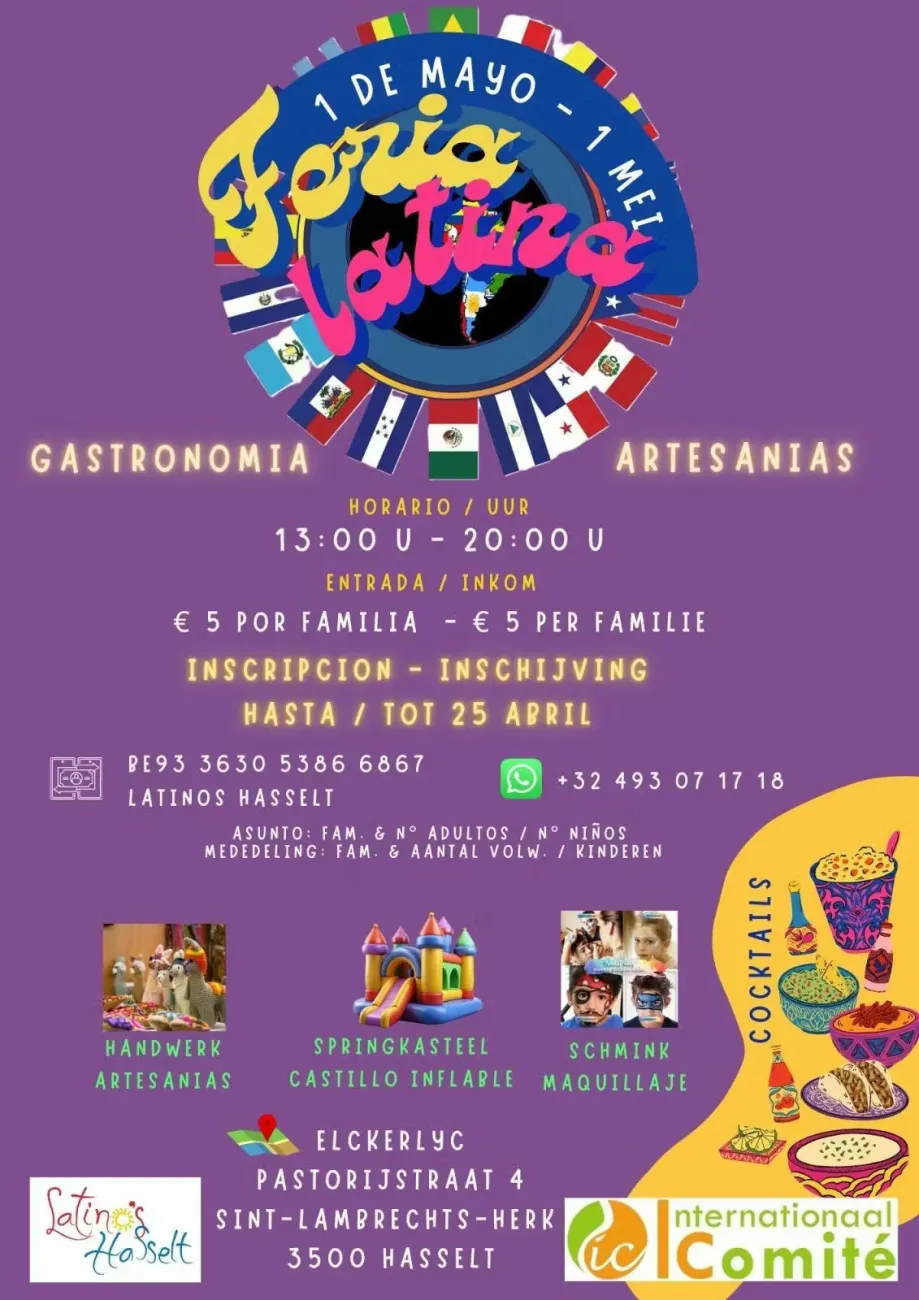 Kom op 1 mei genieten van het Latino culinair en ambachtelijk festival in Hasselt. Een gezellige en kleurrijke familiedag waar smaken, cultuur en ontmoeting centraal staan.