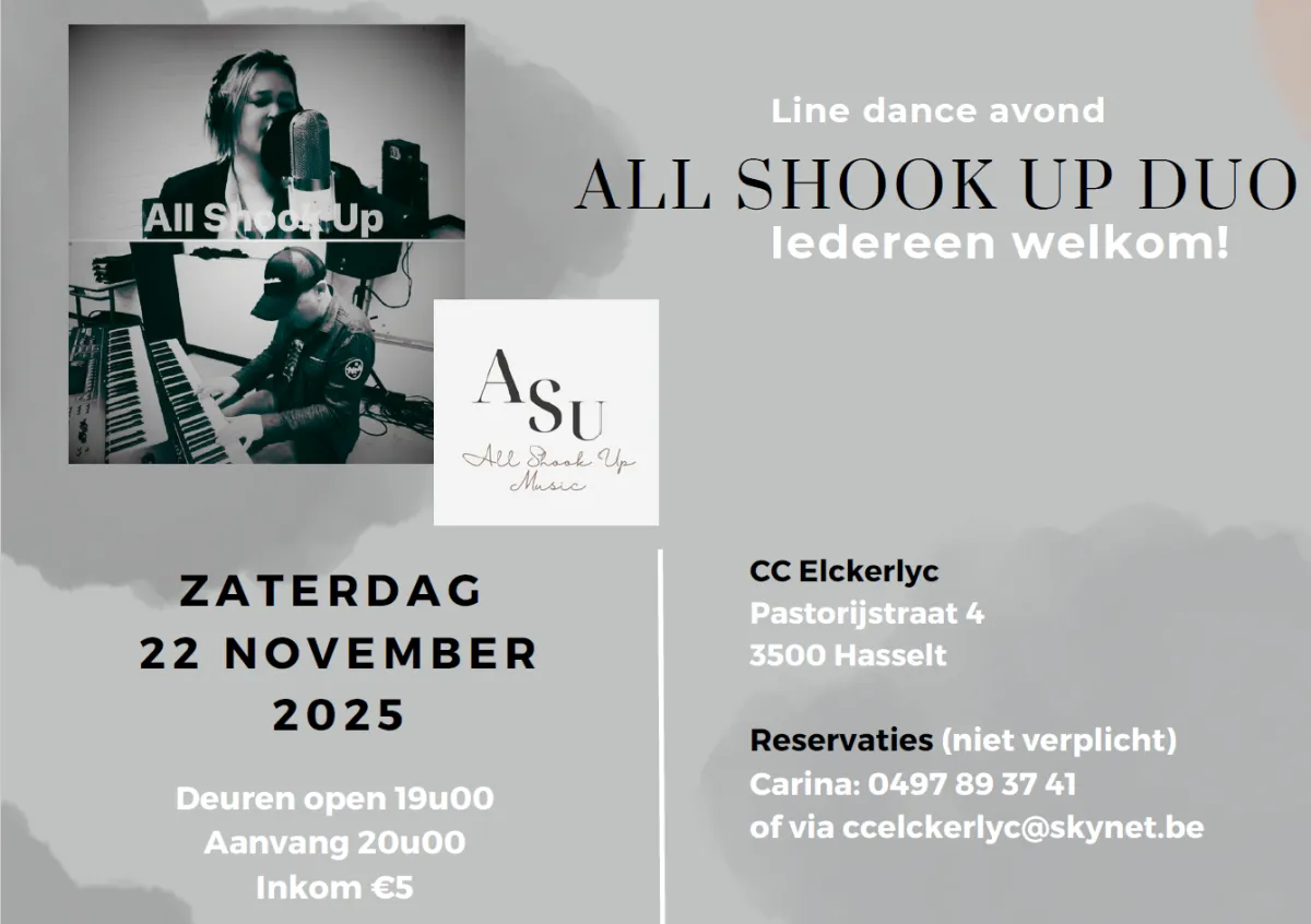 Deze editie wordt muzikaal verzorgd door 'All Shook Up' duo. Trek je 'boots' aan en dans mee!