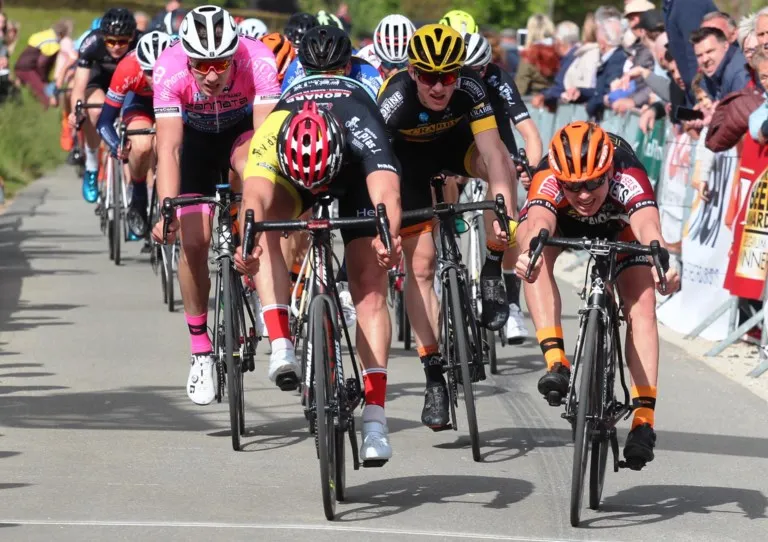 Zaterdag was er nog minder spektakel. Toen verschenen er slechts 13 renners aan de start. Winnaar werd Senne Goossens. De allereerste overwinning voor de tweedejaars junior, die in een spurt met drie veruit de snelste bleek. “Ik ben blij dat ik voor mijn overstap naar de beloften toch eens kon winnen. Ik begon pas twee jaar geleden met koersen nadat ik als voetballer een oogletsel opliep. Ik heb uiteraard wat aanpassing nodig gehad en leergeld moeten betalen. Maar de jongste tijd gaat het goed.”