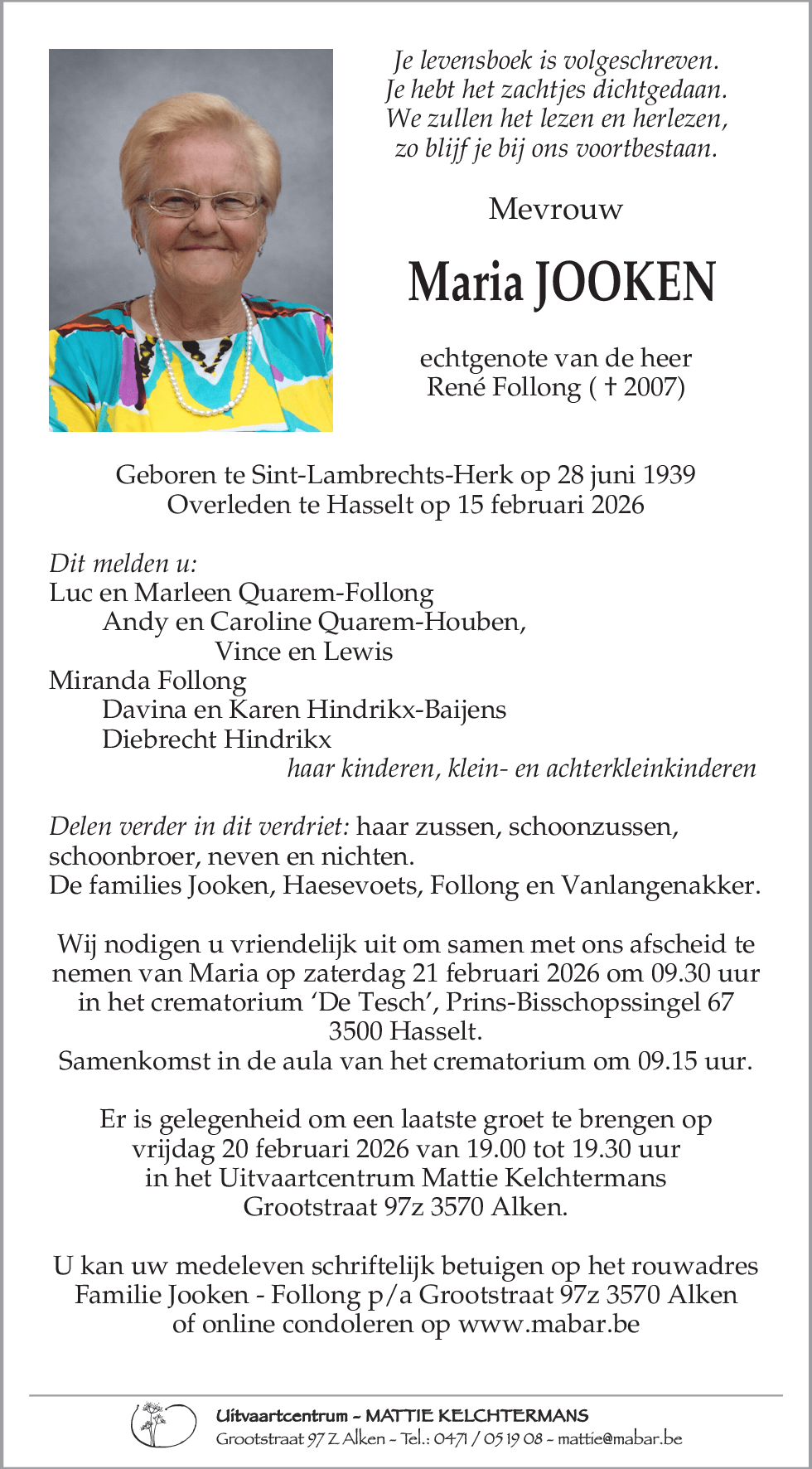 Oprechte innige deelneming en veel sterkte M&M