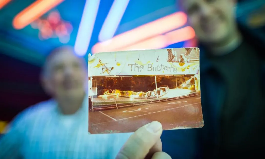 Vader en zoon Severeyns halen oude foto’s boven. De rups door de jaren heen zoeft voorbij. Decennia worden afgetekend in rupsen die steeds moderner worden. ‘Elke rups is met de hand gemaakt’, zegt Monnie met de nodige trots. In de tijd dat Monnie zelf nog aan het roer stond, maakte hij er ook een sport van om kunstjes uit te voeren. Steve: ‘Ik herinner me dat nog heel goed. Nu zou dat niet meer gaan omdat de attractie te snel draait, maar pa die sprong erop en eraf als het spel ronddraaide. Dat vonden de klanten en ik geweldig!’