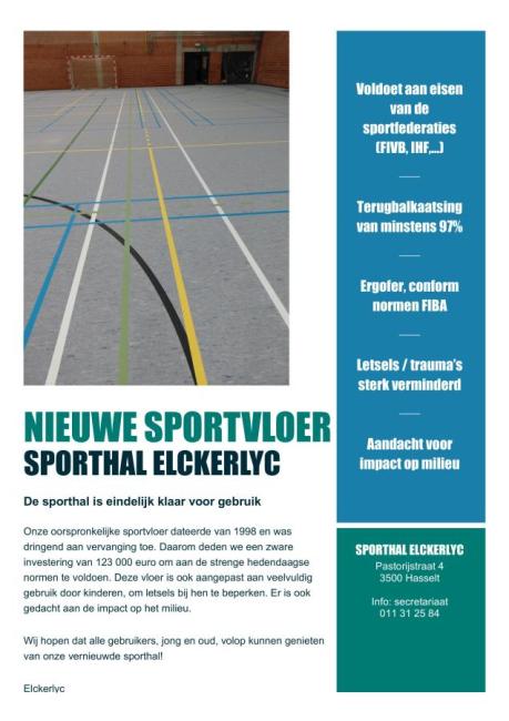 NIEUWE VLOER IN SPORTHAL ELCKERLYC