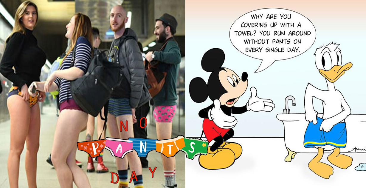 Een ander verhaal over hoe deze dag voor het eerst begon, ging over een man in de jaren tachtig die zijn vrouw vroeg of ze zijn werkbroek mocht strijken voor een belangrijke vergadering. Hoewel hij zich zorgen maakte dat hij te laat zou komen op zijn werk, was er al te veel tijd verstreken, en hij rende de deur uit en vergat zijn broek weer aan te trekken. Toen hij eindelijk besefte dat hij geen broek had, zat hij al in de metro. Omdat hij er niets aan kon doen, deed hij alsof er niets bijzonders was en veinsde hij een glimlach.