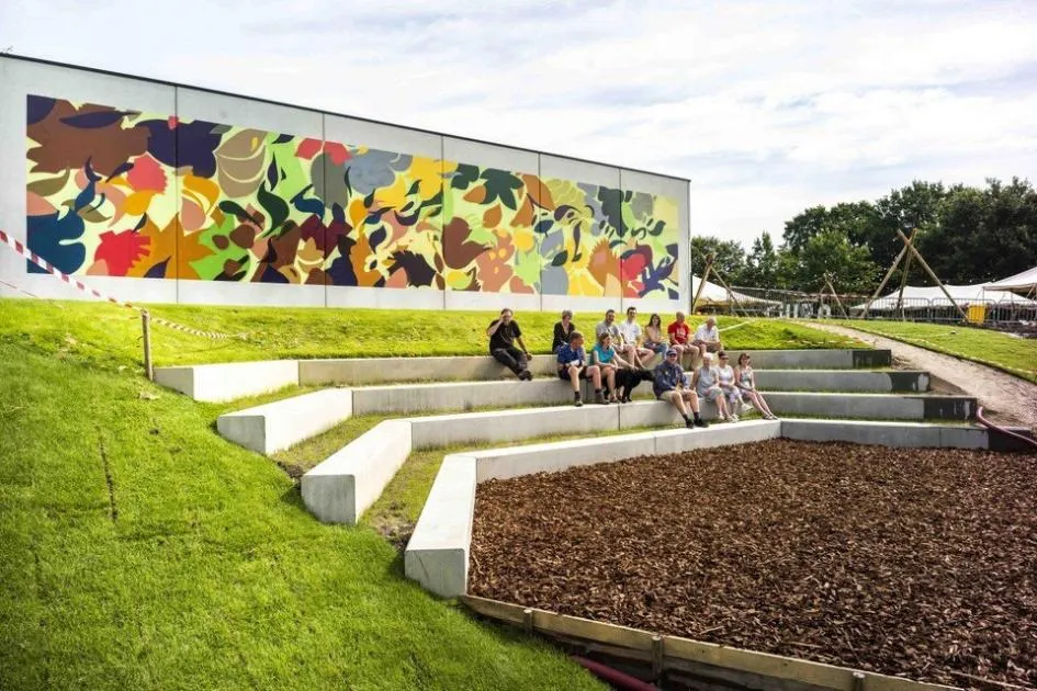 Ook basisschool De Kameleon kan het amfitheater gebruiken, net als de mensen van de Buitenschoolse Kinderopvang ’t Schabolleke. “Het enorme kunstwerk tegen de muur van De Beemdgalm, dat kunstenaar Tom Herck samen met de zesdejaars van De Kameleon maakte met steun van Cultuurkuur, past hier in de natuur. En nu werken we verder aan de uitbouw van het speelterrein en het nog duurzamer maken van de hele omgeving en de gebouw