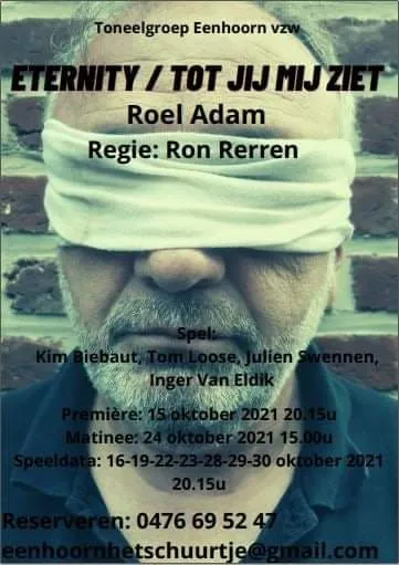 De volgende voorstelling is een productie van auteur Roel Adam Tot jij mij ziet – Eternity, onder regie van Ron Rerren.