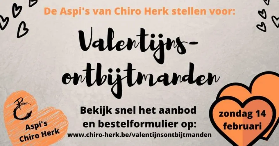 Door de Aspi's van Chiro Herk kan u op Valentijn (zondag 14 februari) genieten van een lekkere ontbijtmand.