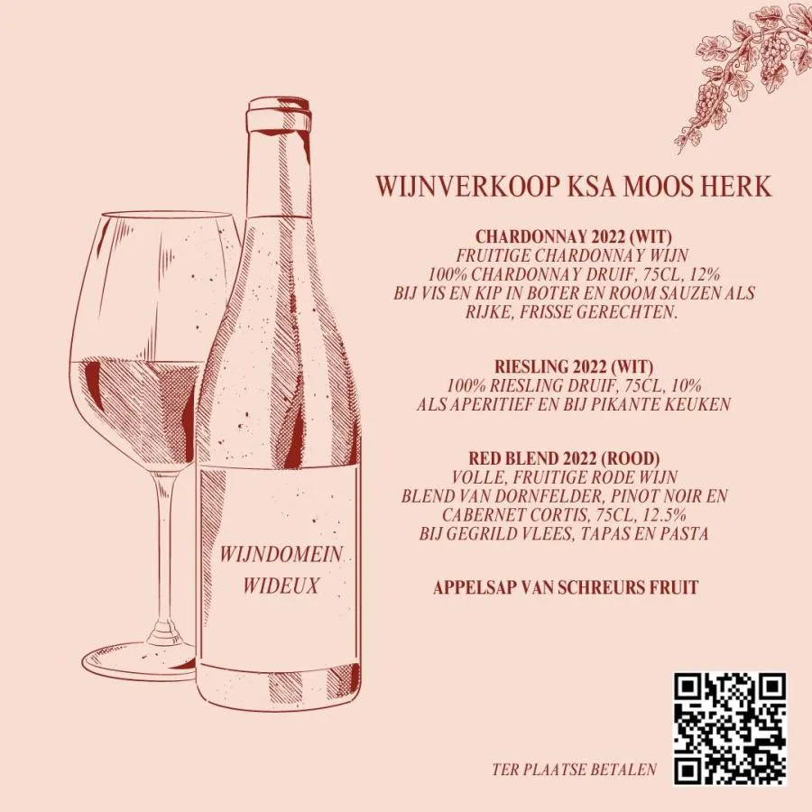 Ten voordele van de aankoop van onze nieuwe container, organiseerd Ksa Moos Herk een wijnverkoop met de wijnen van wijndomein Wideux, hieronder vindt u een selectie waaruit u kan kiezen.